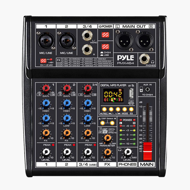 Deze 4-kanaals mixer biedt volledige controle over je audio, met flexibele instelmogelijkheden voor elk geluidselement. Perfect voor feesten, live optredens of karaoke, zodat je de perfecte balans en helderheid kunt creëren.