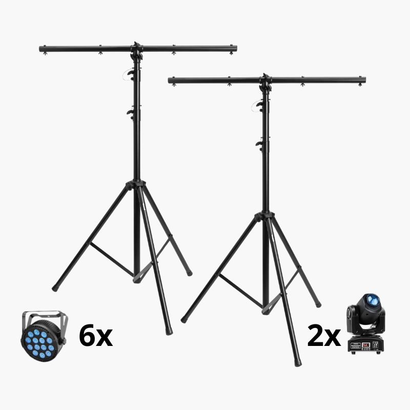 Transformeer je event met ons verlichtingstatieven pakket inclusief zes spots en twee moving heads. Dit pakket biedt alles wat je nodig hebt om een adembenemende lichtshow te creëren. Of je nu een groot evenement organiseert of een intiem feestje, met deze verlichting maak je van elke gelegenheid een spektakel.
